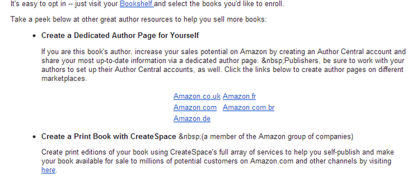 E não apenas a aquisição do novo endereço que confirma a grande chegada da Amazon, como seus contratos com a Cia de Letras e a Distribuidora de Livros Digitais (que representa Rocco, Novo Conceito, Planeta, Objetiva, Record, LPM e Sextante, Ediouro e Globo Livros) e também o envio de e-mails para vários autores e editoras sobre seu serviço de publicação independente para o kindle que foram enviados com e-mail amazon.com.br, que o autor David Gaughran comentou em seu twitter.